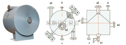 2、在殼體上的接管采用切向結(jié)構(gòu),局部阻力小,由于螺旋通道的曲率是均勻的,液體在設(shè)備內(nèi)流動(dòng)沒有大的轉(zhuǎn)向,總的阻力小,因而可提高設(shè)計(jì)流速使之具備較高的傳熱能力。